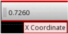 You can display additional text and formatting for a selector on the toolbar. For example, you can choose to display the information in bold and in a different font color. For the X selector, the following sample argument displays the fixed text X and the coordinate in bold format.