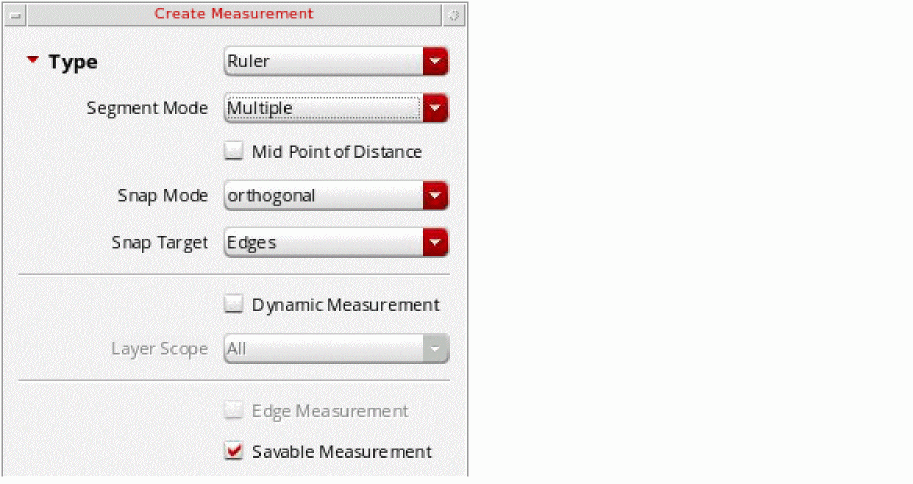 Select the Savable Measurement check box if you want to create a persistent ruler. By default, rulers are saved when you save the cellview. Clear the selection if you do not want to save rulers.