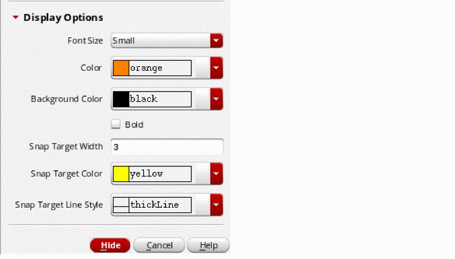 - In the Display Options section, specify the ruler and snap target display settings.