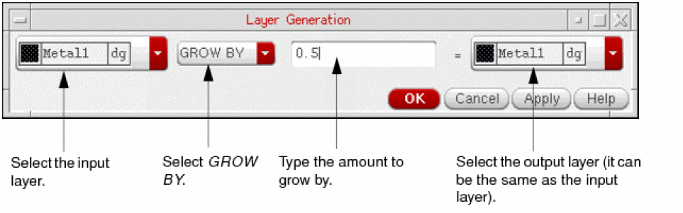 Fill out the Layer Generation form. Specify the input layer, Boolean operator, the resize value, and the output layer. The output layer can be same as the input layer.