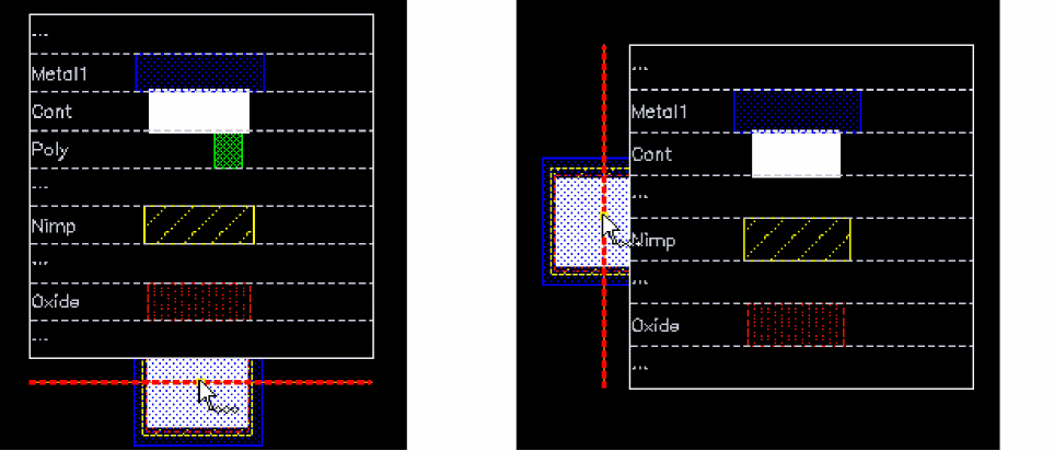 The following image shows how the cutline appears depending on the orientation, when you view a cross section.
