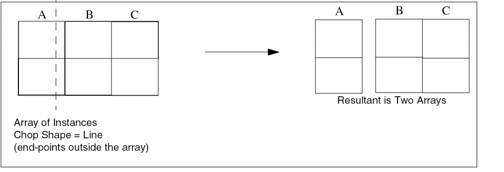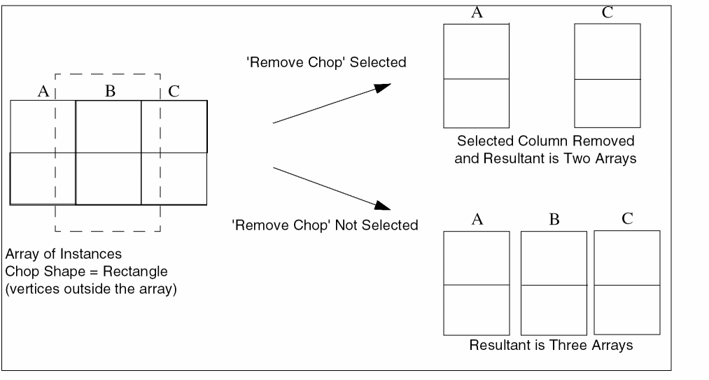 In the following chop areas, not all the points are outside the array. Therefore, these arrays of instances will remain unchanged even if you don’t select the option to chop arrays.