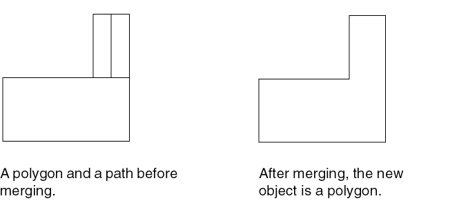 However, when you merge paths of the same width abutting each other, they merge into a single path. When you merge overlapping paths, they merge into a polygon or rectangle.