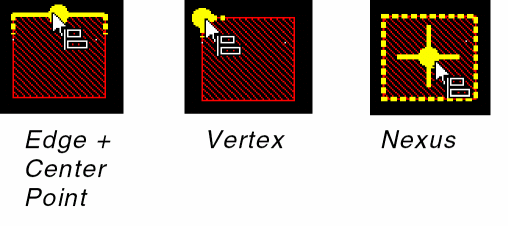 Nexus is the midpoint of the given shape. In case of a polygon, nexus is the center of its bounding box.