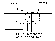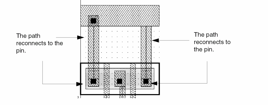 One way to see the effects of Maintain Connections is to change the parameters of an instance that contains pin-path or pin-pathSeg connections on the same layer. After you change the parameters, the instance changes shape to the new value, and the path or pathSeg and pin retain their connectivity.