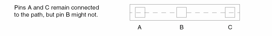 You can configure the layout editor to automatically reconnect path-to-pin and pathSeg-to-pin connections that are broken during any pin editing activity. You can maintain connections by doing one of the following: