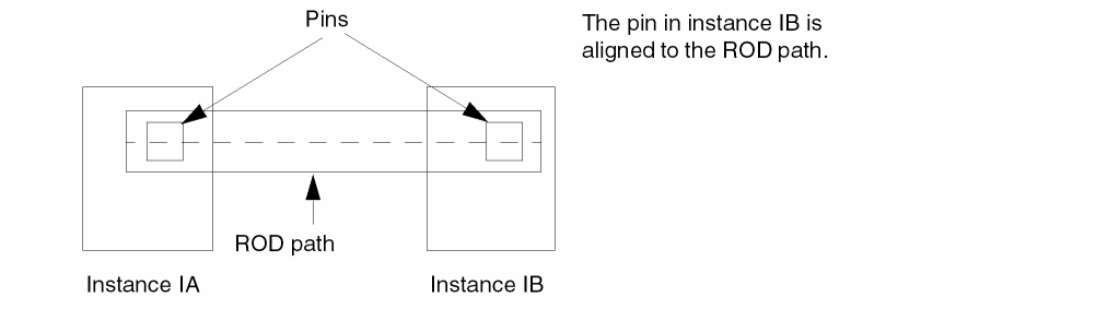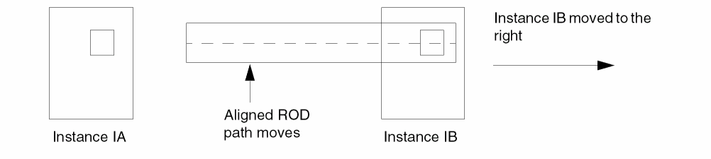 Moving instance IB causes the whole ROD path to move. The aligned path does not stretch, so moving instance IB breaks the electrical connection between the two pins.
