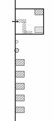 The following figure shows an example where the reference object is a group, the Align Direction is Vertical, and the Use field is set to Left Edge. The Align Using is Any Shape, the Use list is set to Left Edge. Apply Spacing is set to 2.0 user units between objects, and the objects are sorted by Order Selected.