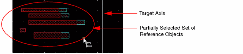 The support for aligning objects in a reference set to a target axis is available only in post-selection mode. You can align the selected objects using full or partial selection.