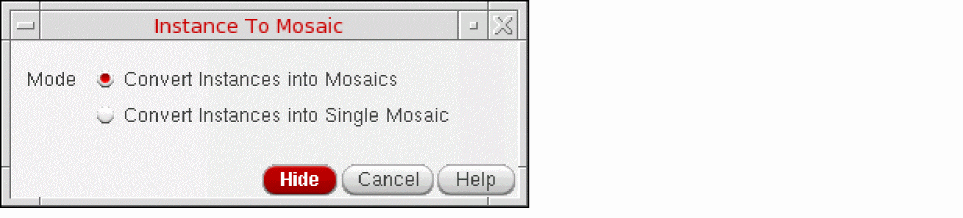 In the Layout Editor Options form, if the Instance Editing Mode is set to P&R Boundary or Snap Boundary, when converting instances to mosaics, the Delta X and Delta Y is set from the PR boundary or snap boundary, and not from the bounding box.