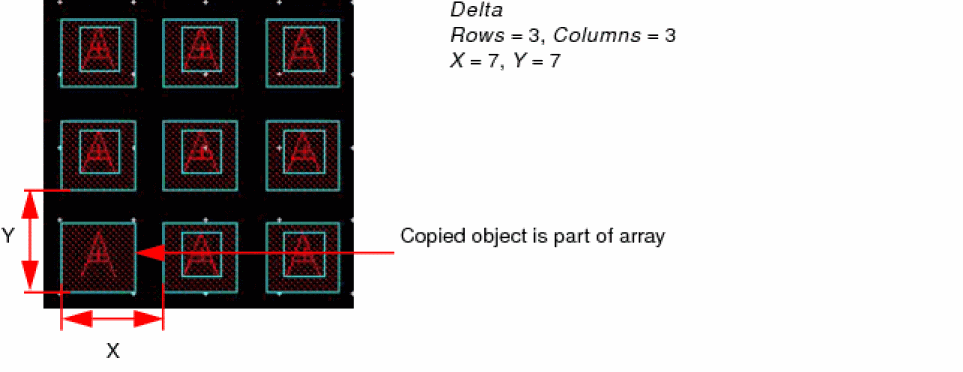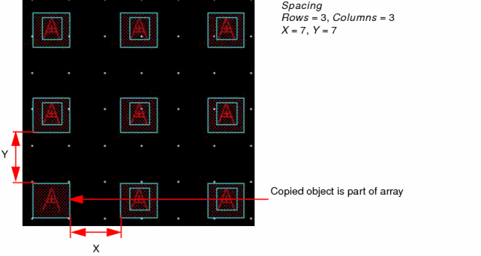 The following figure shows an array of copied objects created using the Spacing option.