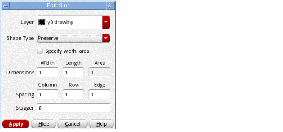 The Edit Slot command applies only to slotted shapes that are created by using the Create Slot, Create Rectangle, or Create Path commands.