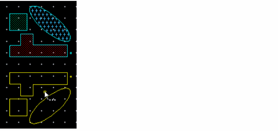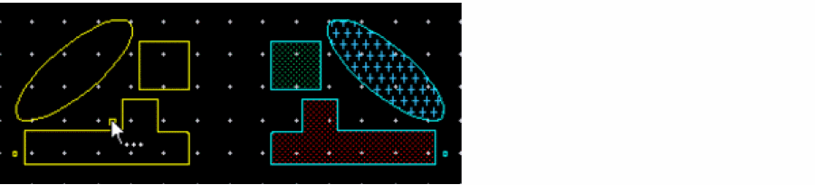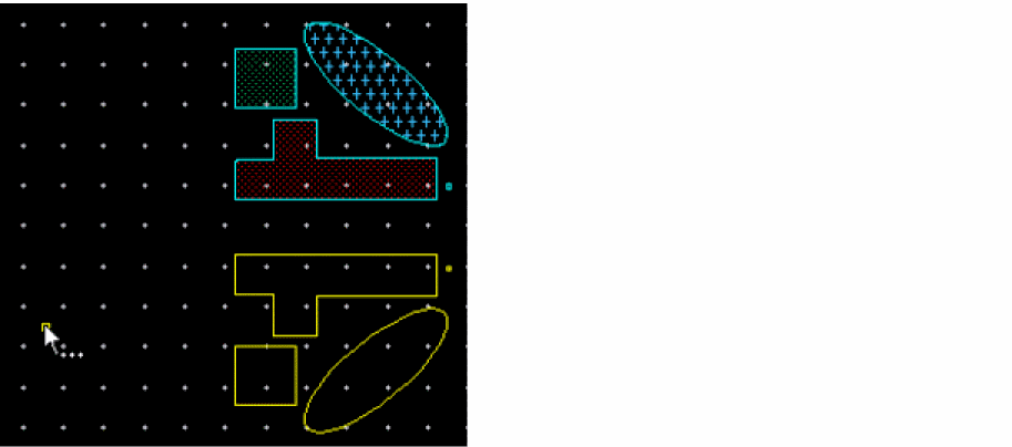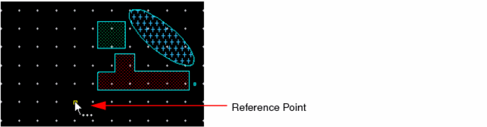 The coordinates of the clicked reference point populate in the X,Y reference point fields of the Flip form. The ghost image of the resultant flip operation displays. The location of the ghost image moves as you move the pointer on the canvas. The following figure below shows the selected objects and the reference point.