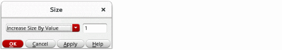 Select the Increase Size by Value or Increase Size by Direction to specify the number of units you want to stretch. If you choose to increase the size by direction, you need to specify the Left, Right, Top, or Bottom units. A positive number enlarges the object, a negative number reduces it.