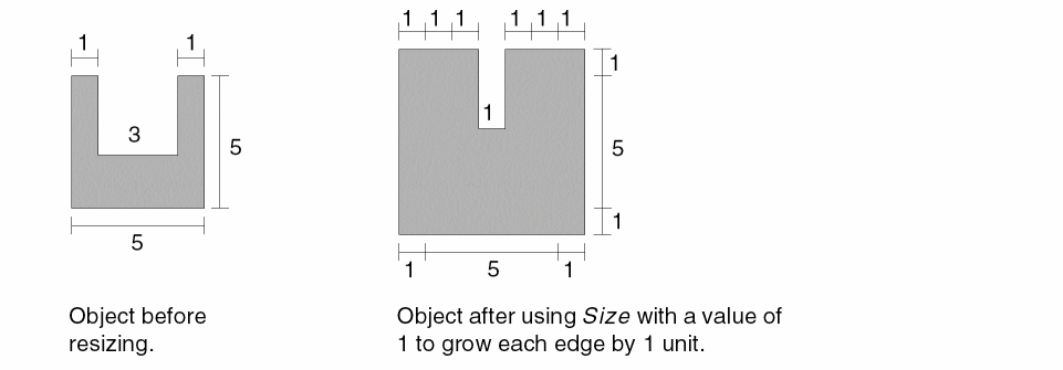 The Size command reduces or enlarges objects by stretching each edge in or out by the given number of user units.
