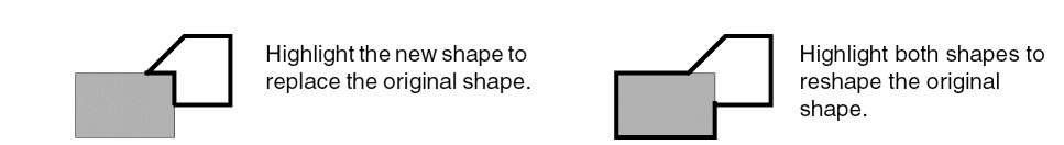 Click the middle mouse button to toggle between highlighting the new shape and highlighting both the old and new shape.