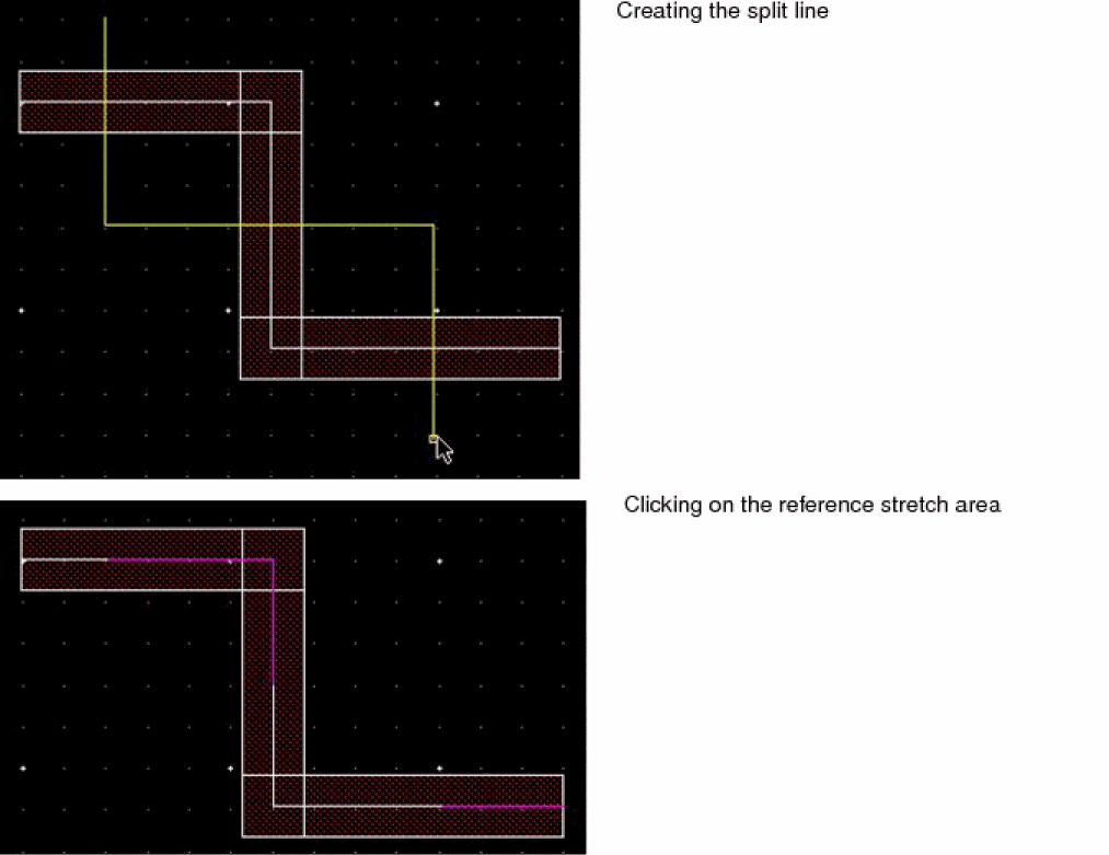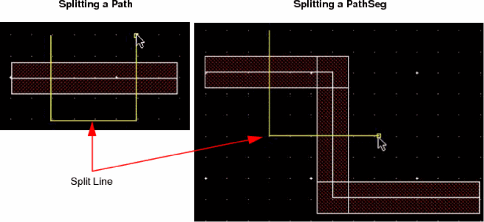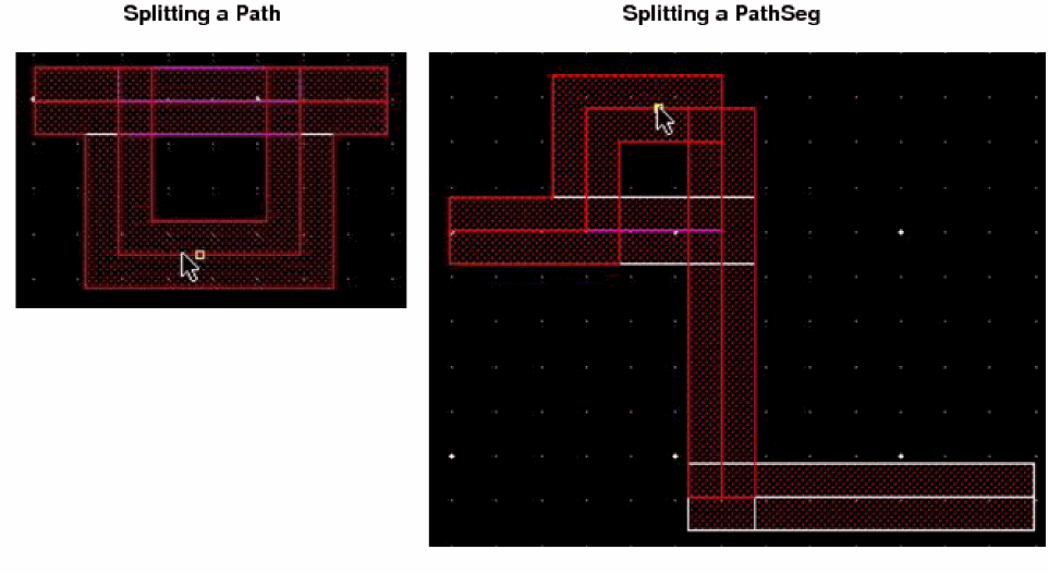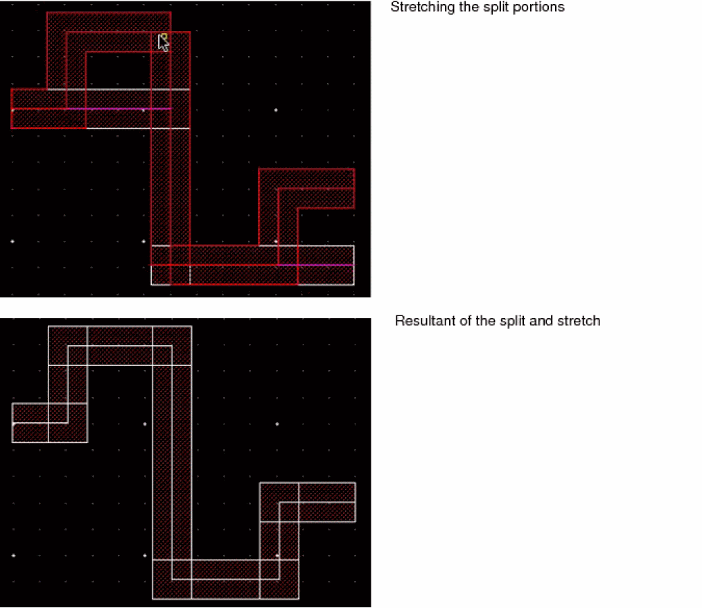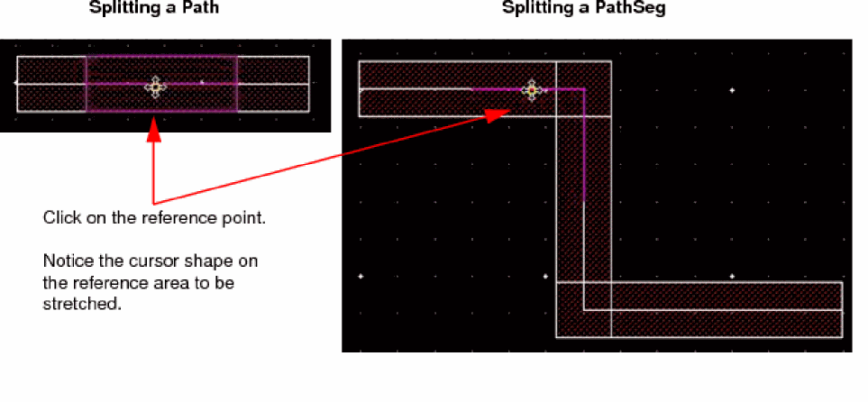The following figures illustrate splitting and stretching of multiple segments of a pathSeg at the same time.
