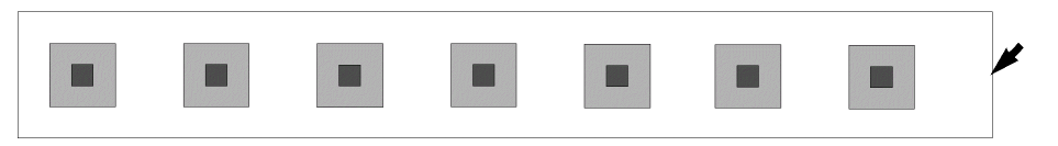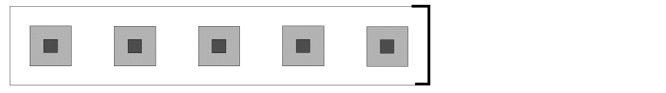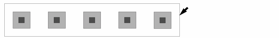 You can stretch the edges and/or corners of a master rectangle of a multipart rectangle in the same way as you stretch regular rectangles: click an edge or a corner and then click at a new location. The system regenerates the arrays of subrectangles associated with the stretched master rectangle. How the subrectangles regenerate depends on the definition of the multipart rectangle. You cannot stretch a master rectangle separately from its associated arrays of subrectangles, nor can you stretch an array of subrectangles separately from its master rectangle.