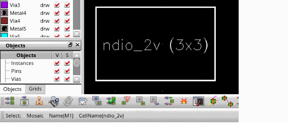 The following image shows a 3x3 mosaic selected. Note the message on the status bar indicates that it is a mosaic.