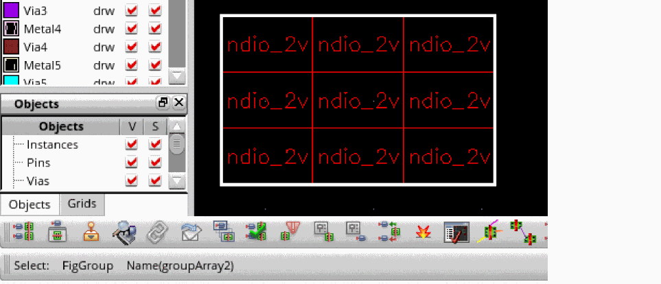 The following image shows that the mosaic is converted to a 3x3 group array. Note the message on the status bar indicates that the selection is a figGroup with the name groupArray2.