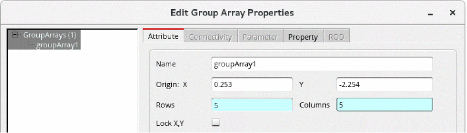 The Edit Group Array Properties form appears. - On the Attribute tab, in the Rows field, specify the number of cell rows you want in the group array.