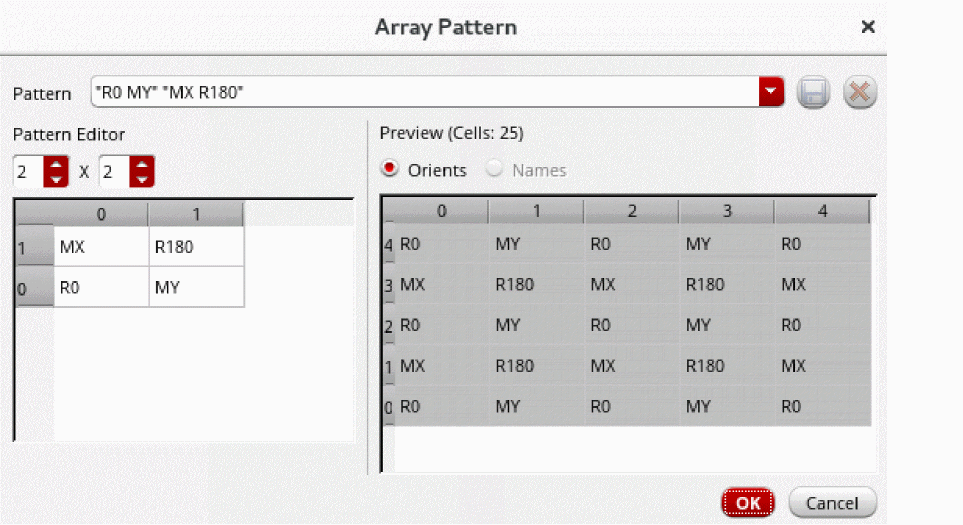 To preview the group array, click the Open Array Pattern editor button