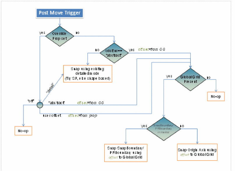 When abstract mode placement is enabled and an instance is placed in the design window, Virtuoso does not search for the master for individual shapes. Instead, an instance snaps to a global snap pattern grid using its snap boundary or PR boundary. If no global grid is enabled, then there is no instance snapping.