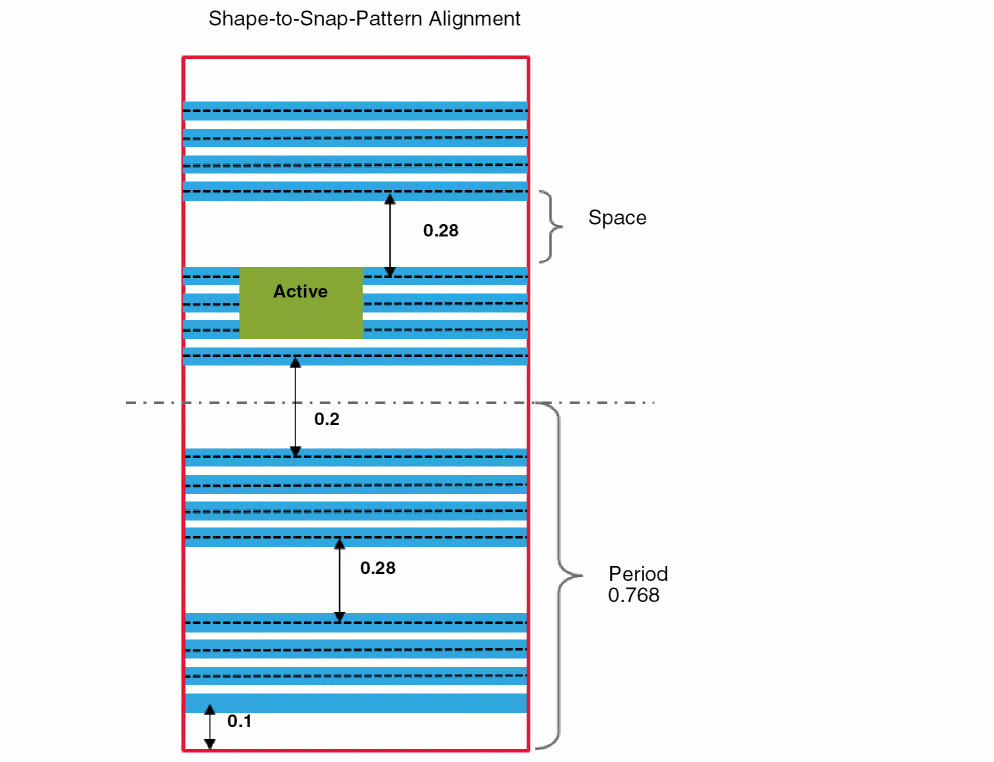 Snap pattern shapes of the snapPatternDef snap to their period lines. Shape snapping for track groups is supported both for global and local snap pattern definitions.