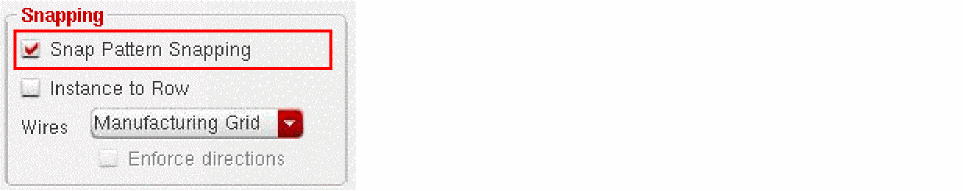 To turn on the Snap Pattern Snapping option at startup, you can set the snapPatternSnapping environment variable in your .cdsenv file.