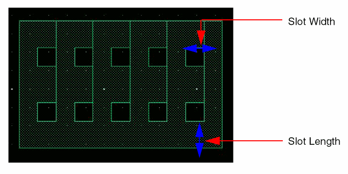 Width/Length: Enables you to specify the width and length parameters for a slot. The area of the slot is automatically calculated.