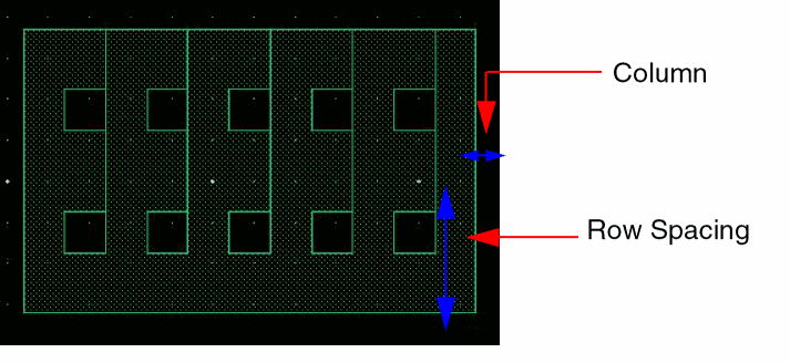 Considers the spacing between rows to derive the minSpacing value if a 1-D spacing table exists in the technology file. Both row spacing and the width of the slot are taken into consideration to derive the minSpacing value if a 2-D spacing table exists in the technology file.