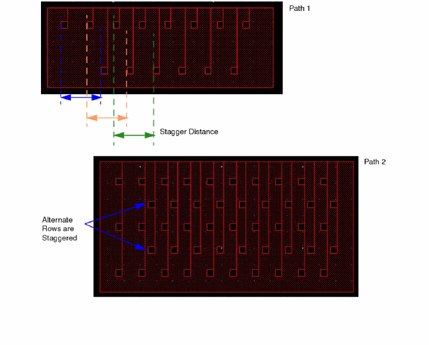 Specifies the spacing between the edges of slots in consecutive rows. Only alternate rows are staggered.Staggering of slots is not supported in rectangles.