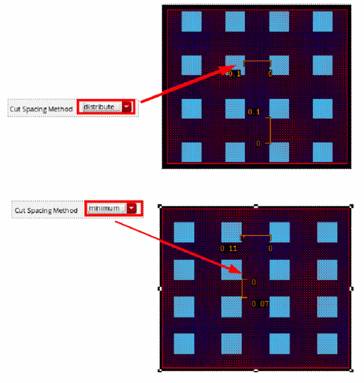 Lets you to select whether the cut spacing is spread or is using the minimum spacing rule constraints. You can select distribute or minimum from the drop-down list. Environment variable: viaCutSpacingMethod ![]() |