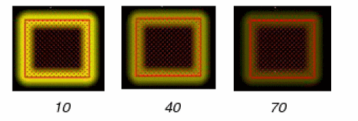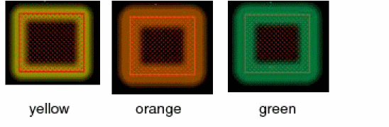 Determines the color of the halo. The default halo color is yellow. When the Halo Mode is set to glow, the Halo Color appears on the outer edges of the halo. The figures below show examples of the halo in three colors. ![]() |