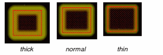 Specifies the thickness of the halo on a protected object. The default width is normal. The figures below show halos with different thickness.
