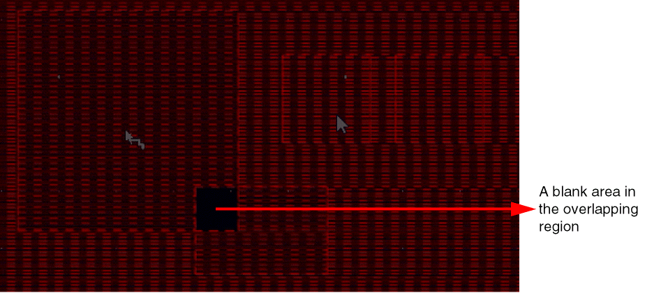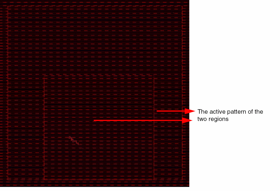The region R1 hasWSP1as the active pattern and the region R2 hasWSP2as the active pattern. The overlap area of the two regions does not have any pattern available and displays a blank area. Also, a pin cannot be snapped inside the overlapping area.
