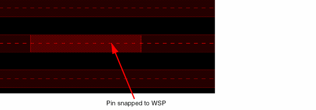 If a pin shape can be snapped to a snap pattern, there will be no change in the behavior. Otherwise, it will try to snap to WSP. The center of the pin is snapped to the center of the closest track. WSP snapping is only supported for rectangular pins and not polygon pins.
