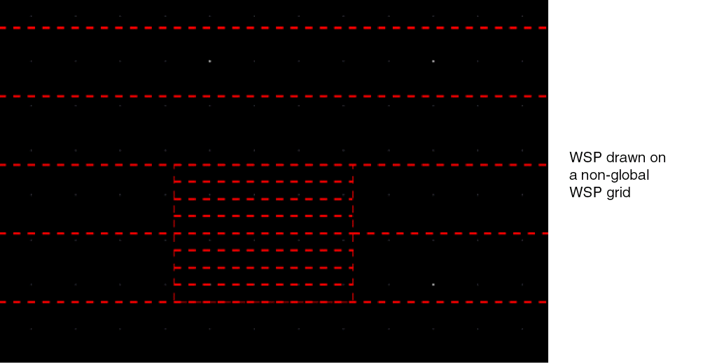 A region is any shape drawn on a width spacing pattern layer-purpose pair (WSP LPP). The widthSpacingSnapPatternDef of the region may or may not be defined as part of the global WSP grids. You can create a region shape on a non-global WSP grid with a period different than the period of the global grid.