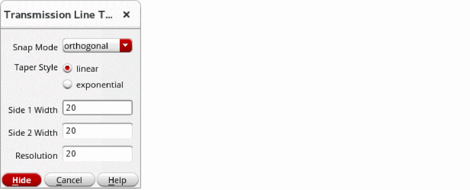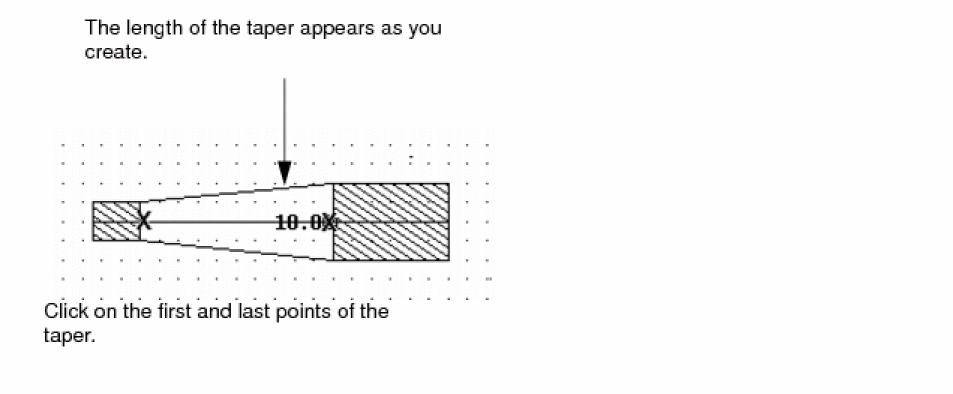 You can use the Taper command to create a one-segment transmission line that connects two transmission lines of different width settings. You create tapers similar to the way you create paths.