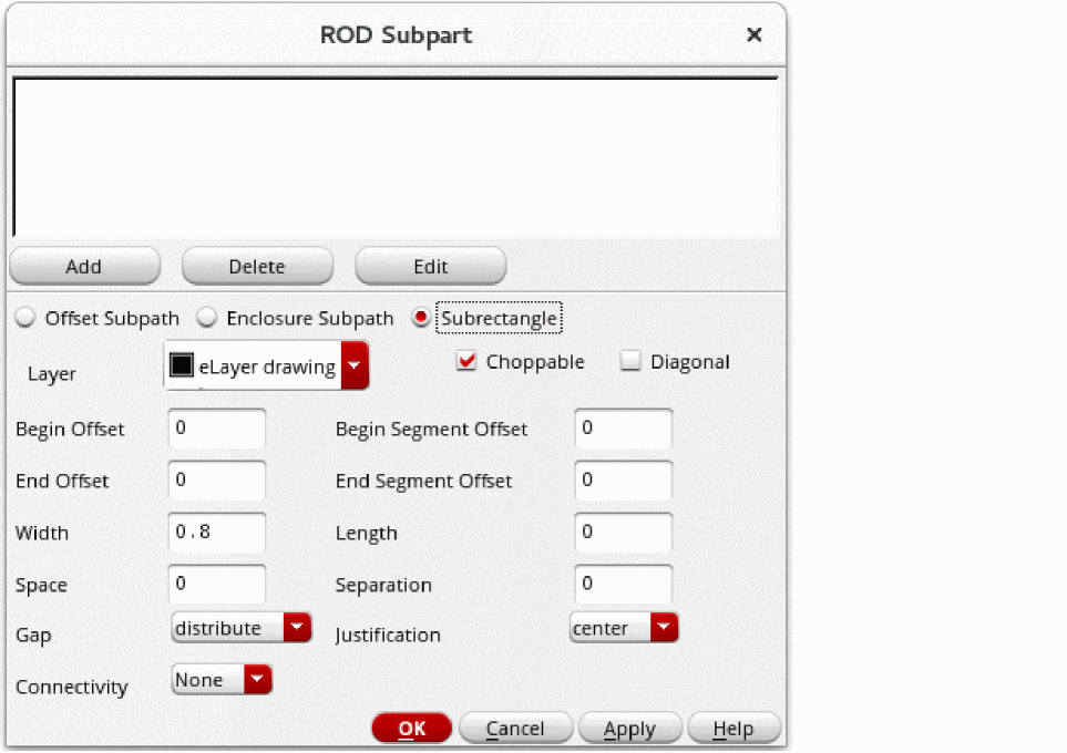 To add the new subrectangle to the box at the top of the ROD Subpart form, click Add.