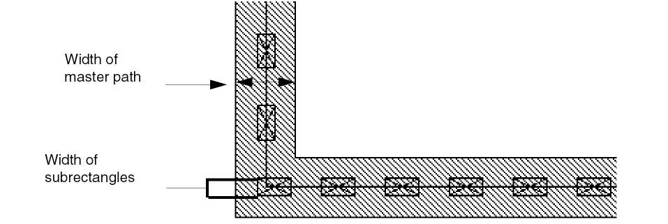 When you specify that a set of subrectangles is a pin, each rectangle in the set becomes a pin. In the layout editor, the whole multipart path (master path plus all subparts) is treated as a single object. -