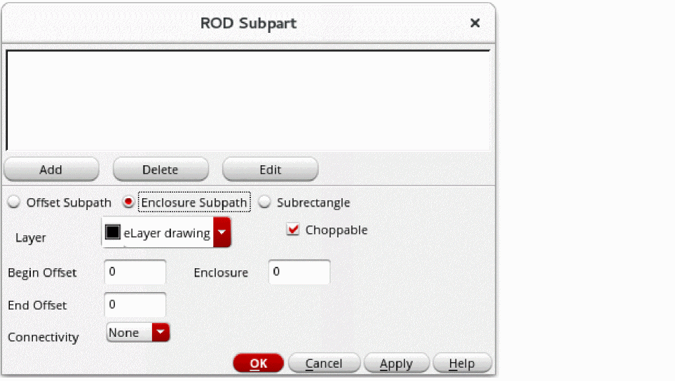 To add the new enclosure subpath to the box at the top of the ROD Subpart form, click Add.