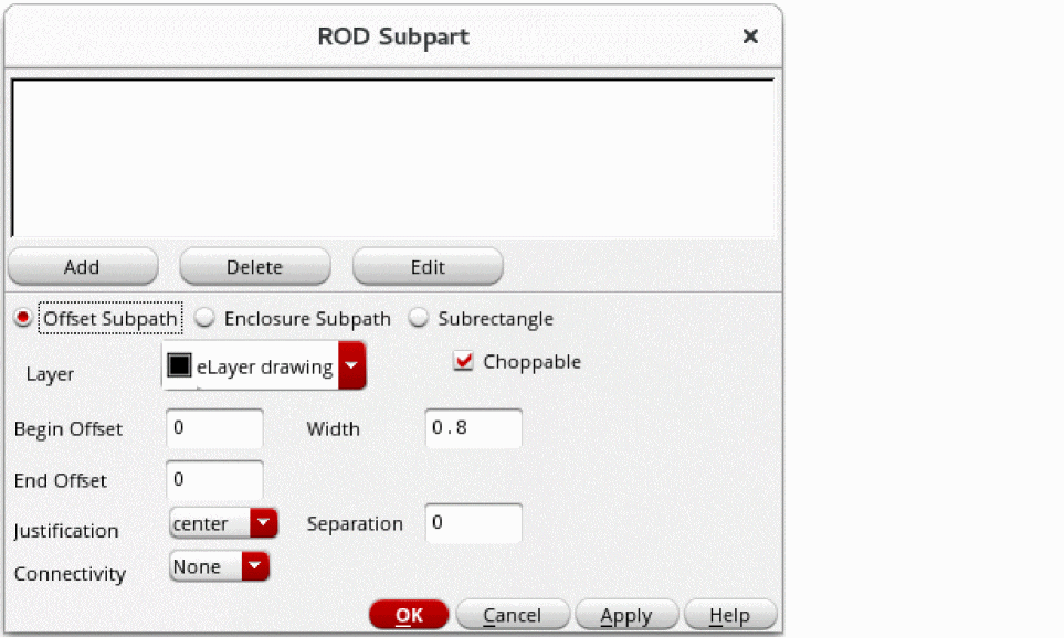 To add the new offset subpath to the window at the top of the ROD Subpart form, click Add.