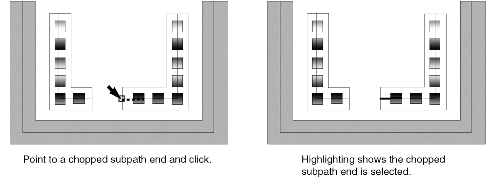 To select the end of one chopped subpath, do one of the following in partial selection mode: