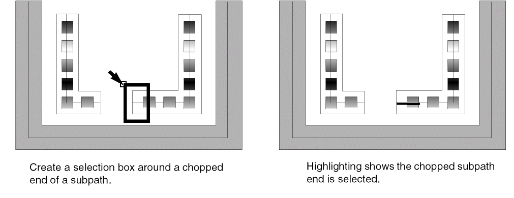 In partial selection mode, you can select the ends of one or more chopped subpaths in a multipart path and stretch them.