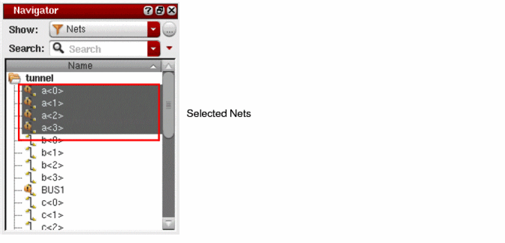 You can select one or more nets in the Navigator assistant as shown in the following figure.