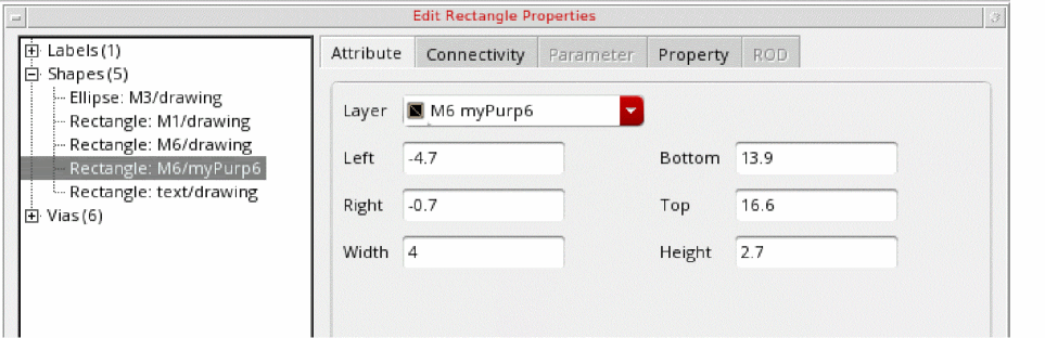 - Click the appropriate tab in the form to view attributes, connectivity, parameters, or user-defined properties.