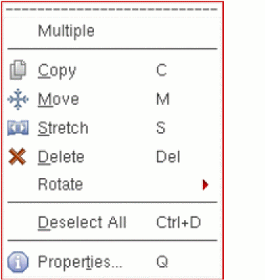 If multiple objects of different types are selected when you right-click, the Multiple shortcut menu appears, which allows you to perform basic editing operations on all the objects selected.