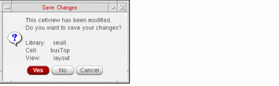 If you edited the current cellview since the last time you saved your data, the Save Changes dialog box appears and prompts you to save the changes, discard them, or cancel the close operation.