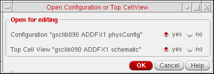 Set both Configuration and Top Cell View to yes to open both the physical configuration view and the schematic view.